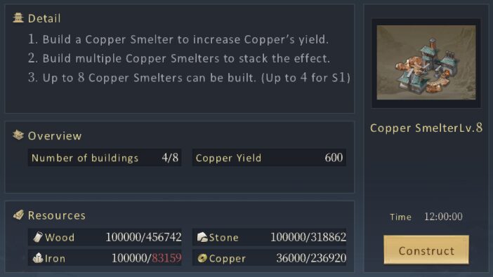 Lưu ý: khi xây dựng hoàn thành Xưởng luyện xu thì sản lượng của mỏ tài nguyên bị dùng xây xưởng xu sẽ bị mất đi